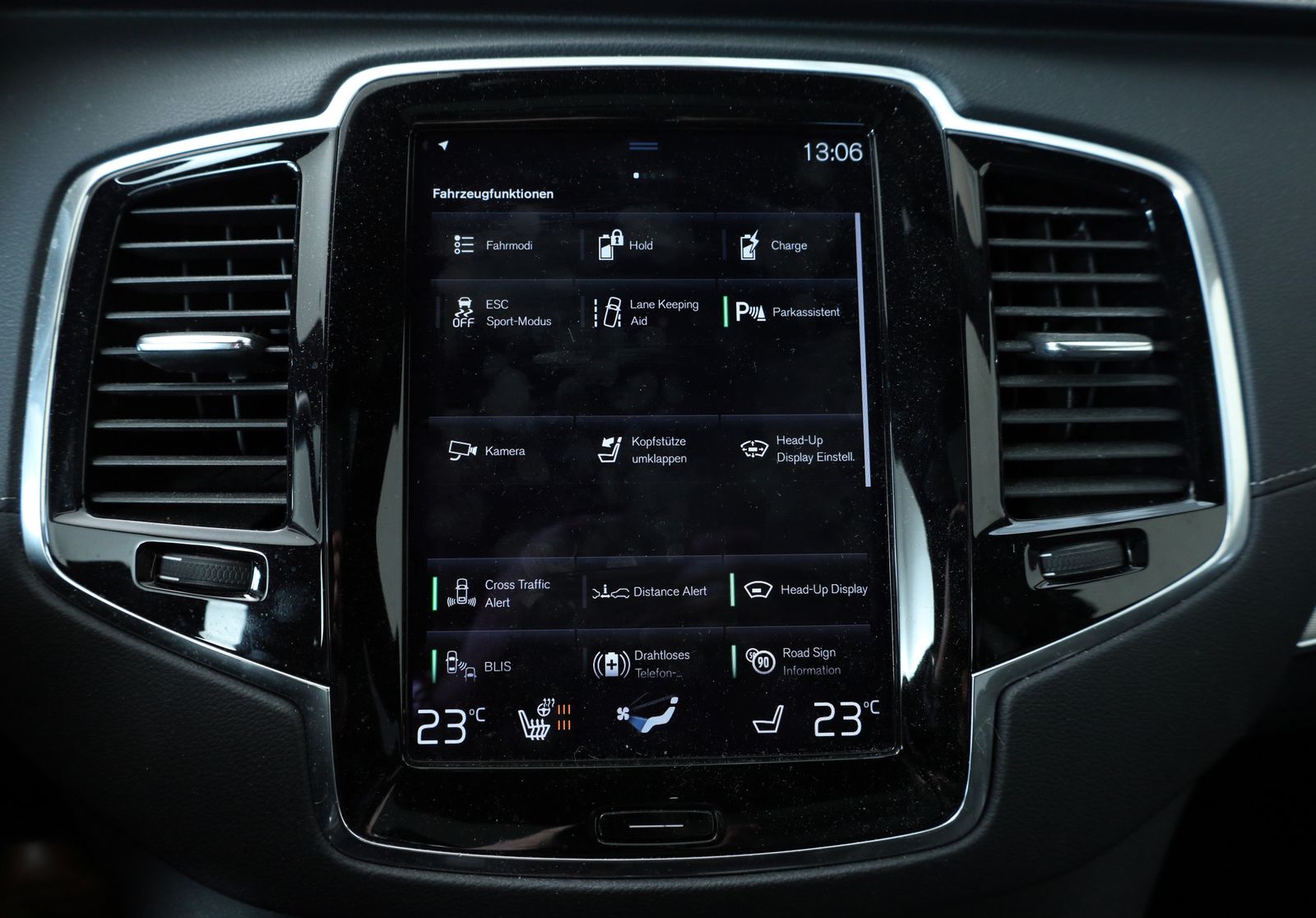 Polster-/Innenraumfarbe: Nappaleder/Ledernachbildung Komfortsitze (Vordersitze perforiert) mit aktiver Belüftung , Winter-Paket - Lenkradheizung - Sitzheizung vorn , Xenium-Paket - Audiosystem High Performance Sound Pro by Harman/Kardon - Erweitertes Luftqualitätssystem - Panorama Glas-Schiebedach mit Hebefunktion , Edition-Paket - Einparkhilfe vorn und hinten - Rückfahrkamera - Scheinwerferreinigungsanlage - Voll-LED-Scheinwerfer ''Thors Hammer'' Active High Beam , Anhängerkupplung schwenkbar , Head-up Display , Induktives Smartphone-Ladesystem (Qi-Standard) , Sitzheizung hinten (äußere Sitze der 2. Sitzreihe) , Textilfussmatten 3. Sitzreihe , Airbag Beifahrerseite , Airbag Beifahrerseite abschaltbar , Airbag Fahrerseite , Ambiente-Beleuchtung , Anhänger-Stabilisierungs-Programm (TSA) Vorbereitung , Anti-Blockier-System (ABS) , Antriebsart: Allradantrieb , Applikationen an den Seitenfenstern schwarz, hochglänzend , Armaturenbrett in Leder-Optik mit Kontrastnaht , Armaturenbrett und Türverkleidungen in Leder , Audio-Paket High Performance Sound , Automatische Fahrlichtschaltung / Lichtsensor , Außen-/Innenspiegel mit Abblendautomatik , Außenausstattung: Chrom-Applikationen , Außenspiegel elektr. anklappbar , Außenspiegel elektr. verstell- und heizbar , Außenspiegel schwarz, hochglänzend , Außentemperaturanzeige , Betätigung Heckklappe/-Deckel automatisch , Blinkleuchten LED in Außenspiegel integriert , Bordcomputer , Bremsenergierückgewinnung , Dachhimmel Anthrazit , Dachreling schwarz, hochglänzend , Digitale Instrumentierung 12,3''-Display , Einparkhilfe hinten , Einstiegsleisten mit Aluminiumeinlage , Elektron. Differentialsperre Corner Traction Control (CTC) mit Torque Vectoring , Erste Hilfe-Kasten / Verbandkasten , Exterieurumfänge lackiert , Fahrassistenz-System: Automatische Stabilitätskontrolle ESC , Fahrassistenz-System: Bergabfahrkontrolle (HDC) , Fahrassistenz-System: Berganfahr-Assistent (HSA) , Fahrassistenz-System: Bremsassistent , Fahrassistenz-System: City-Safety-System (Autonomer Notbrems-Assistent) , Fahrassistenz-System: Connected Safety , Fahrassistenz-System: Fahrprofilauswahl (Drive Mode) , Fahrassistenz-System: IntelliSafe Assistent , Fahrassistenz-System: IntelliSafe Surround , Fahrassistenz-System: Multikollisionsbremse (Multi Collision Brake) , Fahrassistenz-System: Müdigkeits-Warner (Driver-Alert-Control, DAC) , Fahrassistenz-System: Oncoming Lane Mitigation , Fahrassistenz-System: Run-off Road Protection , Fahrassistenz-System: Straßenrand-Erkennung (Road Edge Detection) , Fensterheber elektrisch vorn + hinten , Gepäckraum-Abtrennung (Netz) , Gepäckraumabdeckung / Rollo , Getriebe Automatik