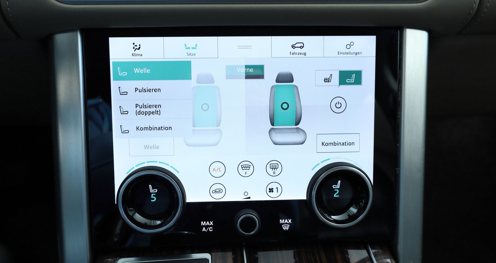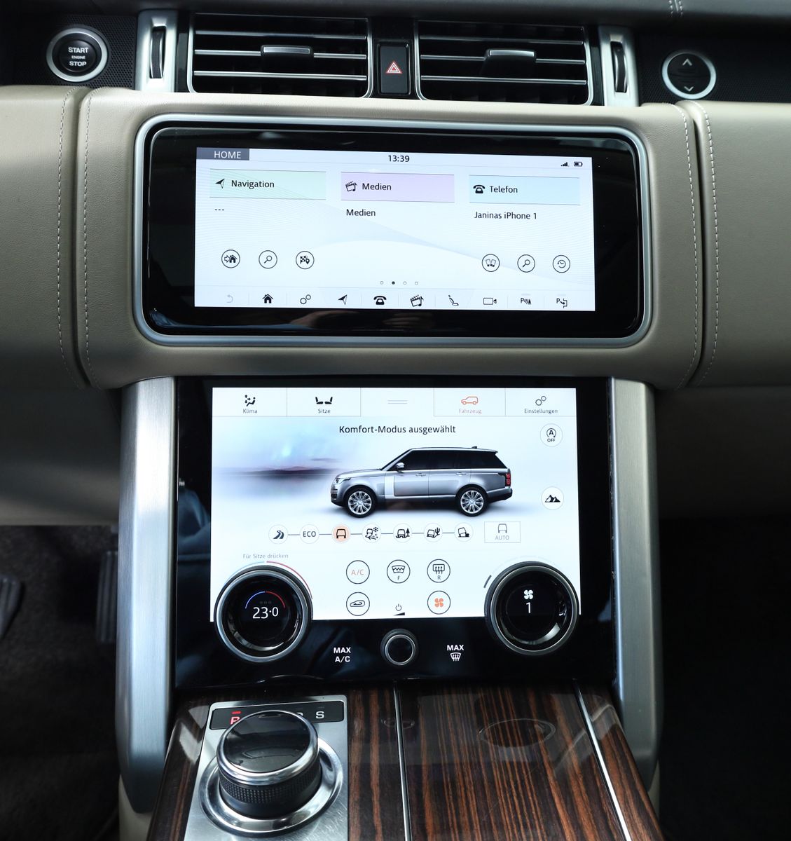Drive Select (8-Stufen) , Getränkehalter hinten , Getränkehalter vorn , Heckklappe/-Deckel elektr. betätigt (öffnen + schliessen) , Heckleuchten LED , Heckscheibenwischer , InControl Apps , InControl Remote Premium (Onlinedienste / Apps) , InControl Touch Pro Infotainment-System (Farbdisplay) , Innenausstattung: Ebenholz , Innenausstattung: Erweiterte Holzausstattung , Innenausstattung: Nähte für Ledersitze Kontrastfarbe , Innenspiegel mit Abblendautomatik , Instrumentenanzeige TFT-Farbdisplay (12 Zoll) , Isofix-Aufnahmen für Kindersitz , Karosserie: 5-türig , Keyless-Entry , Kindersicherung elektrisch , Klimaautomatik 4-Zonen , Kopf-Airbag-System (Windowbag) , Kopfstützen vorn elektr. verstellbar , Kopfstützen vorn mit verstellbaren Seitenflügeln , Kurvenbremskontrolle (Corner-Brake-Control, CBC) , Kühlergrill Atlas / Chrom Finish , Laderaumabdeckung , Lendenwirbelstütze Sitz hinten, elektr. verstellbar , Lendenwirbelstütze Sitz vorn links, elektr. verstellbar, 4-fach , Lendenwirbelstütze Sitz vorn rechts, elektr. verstellbar, 4-fach , Lenkrad heizbar (Leder) mit Multifunktion , Lenkrad mit Schaltwippen/-tasten, Premium (Aluminium-Optik) , Lenksäule (Lenkrad) elektr. verstellbar , LM-Felgen , Luftfederung elektronisch geregelt , Mittelarmlehne hinten , Mittelkonsole mit Ablagefachabdeckung , Modellpflege , Motor 5,0 Ltr.