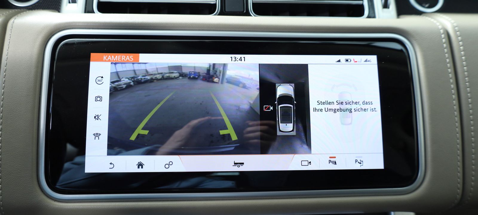 386 kW V8 32V Kompressor KAT , Multifunktions-Touchscreen , Multimediasystem im Fond mit 10 Zoll Bildschirm , Nebelscheinwerfer , Panorama-Schiebedach elektrisch , Park-Distance-Control hinten , Park-Distance-Control vorn , Parkbremse elektrisch , Radstand 3120 mm , Reifendruck-Kontrollsystem , Reserverad als Notrad , Rußpartikelfilter , Rücksitzlehnen elektr. umklappbar , Rücksitzlehnen elektr. verstellbar, zweiteilig , Schadstoffarm nach Abgasnorm Euro 6 , Scheibenpaket , Scheibenwischer mit Regensensor , Scheinwerfer LED , SCR-System (AdBlue-Technologie) , Seitenairbag vorn , Seitenscheiben hinten Verbundglas , Seitenscheiben vorn Verbundglas , Servolenkung elektrisch , Sicherheitsgurte höhenverstellbar , Sitzbezug / Polsterung: Leder Semianilin , Sitze vorn mit Armlehnen , Sitze vorn mit elektr. verstellbaren Seitenwangen , Sitze vorn mit Massagefunktion , Soft-Close-Automatik für Türen , Sonnenblende links mit Spiegel, zweiteilig (beleuchtet) , Sonnenblende rechts mit Spiegel, zweiteilig (beleuchtet) , Sonnenschutzrollo an Türscheibe hinten elektr. , SOS-Notruffunktion für Lokalisierung Fahrzeug (InControl Protect) , Sprachsteuerung System , Start/Stop-Anlage , Steckdose (12V-Anschluß) im Koffer-/Laderaum , Stoßfänger vorn Wagenfarbe , Stoßfänger, Komponenten Atlas Finish , Surround-Kamerasystem , Telefonsystem integriert (mit Bluetooth-Option) , Teppich-Fußmatten Premium , Terrain-Response-System 2 , Touchscreen-Farbdisplay (10,2 Zoll) , Traktionskontrolle , TV-Tuner, analog und digital